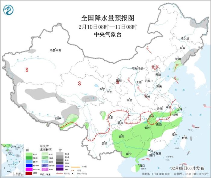 圖2 全國降水量預(yù)報圖(2月9日08時-10日08時)圖片來源:中央氣象臺網(wǎng)站