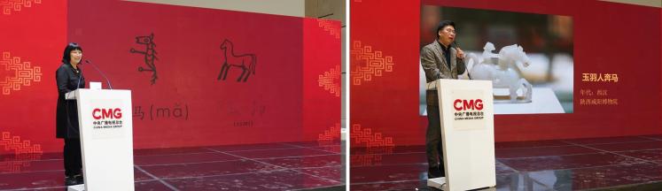 在“馬元素展示”環(huán)節(jié),北京大學(xué)、上海外國語大學(xué)的專家分別圍繞總臺春晚主標(biāo)識“騏驥馳騁”和中埃兩國博物館的豐富館藏,現(xiàn)場分享中華文明與古埃及文明中馬元素的文化意象與精神意蘊(yùn)。