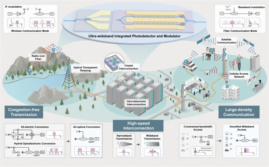 AI數(shù)據(jù)中心算力提升和下一代無線通信網(wǎng)絡(luò)6G的蓬勃發(fā)展,要求在多樣化場景滿足信號的高速、低時延傳輸。然而,光纖通信與無線通信在信號架構(gòu)與硬件約束上存在“帶寬鴻溝”。