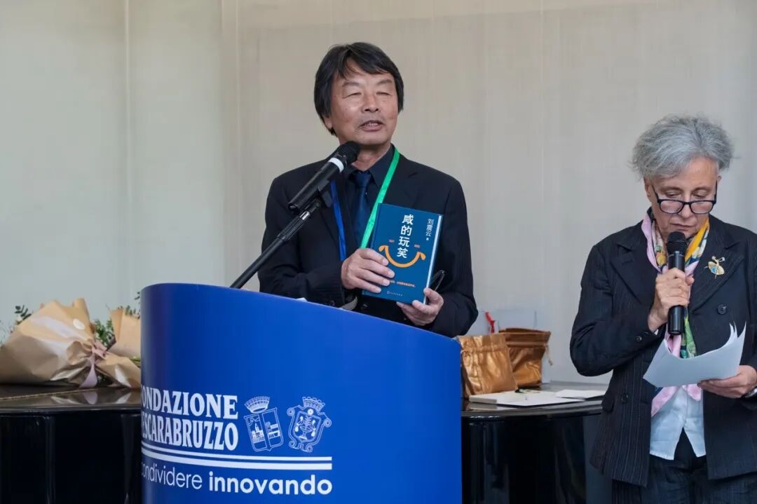 2026年2月20日,劉震云在意大利國(guó)際南北文學(xué)獎(jiǎng)的頒獎(jiǎng)儀式上講話,旁邊為其作品意大利語翻譯李莎(Patrizia Liberati)。