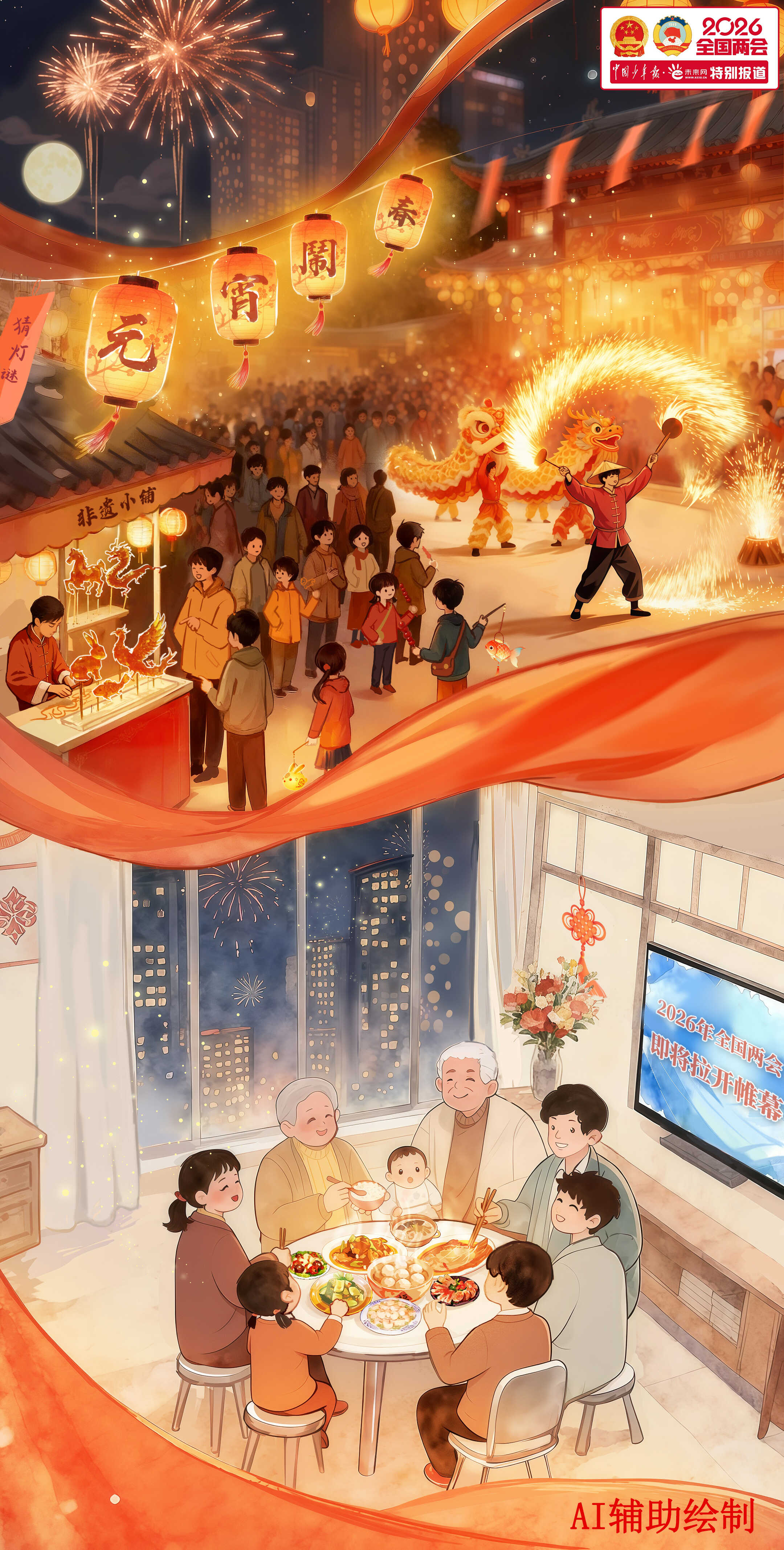 當(dāng)一盞盞花燈點亮城市街巷,當(dāng)一碗碗湯圓、元宵端上萬家餐桌,2026年元宵佳節(jié)如約而至。燈火璀璨處,有孩童提燈嬉鬧的歡聲笑語,有長輩圍爐話家常的其樂融融,更有無數(shù)奮斗者收拾行囊、即將奔赴遠方的身影。而在北京,一場備受關(guān)注與期待的春日盛會——全國兩會,也將在明天(3月4日)拉開帷幕。