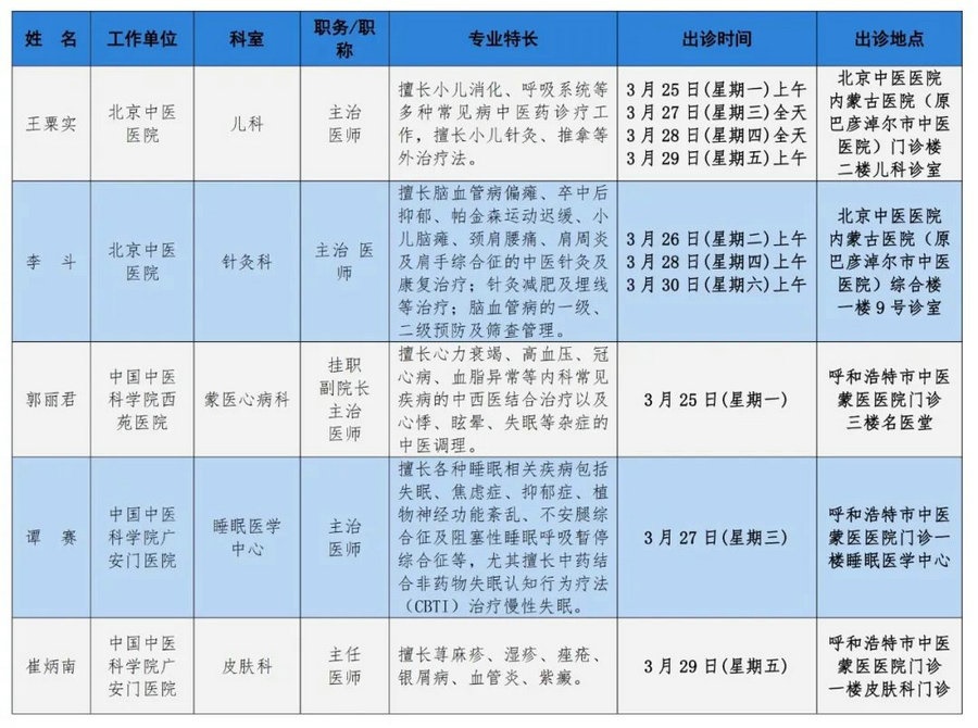 京蒙協(xié)作 政協(xié)助力。每周有北京相關(guān)協(xié)作醫(yī)院專家來呼和浩特出診,現(xiàn)將本周專家出診信息予以發(fā)布。