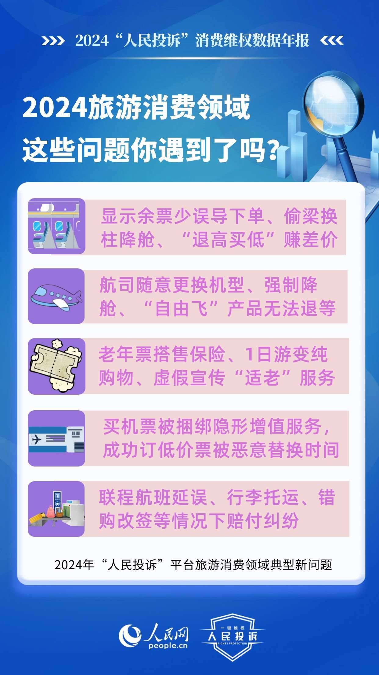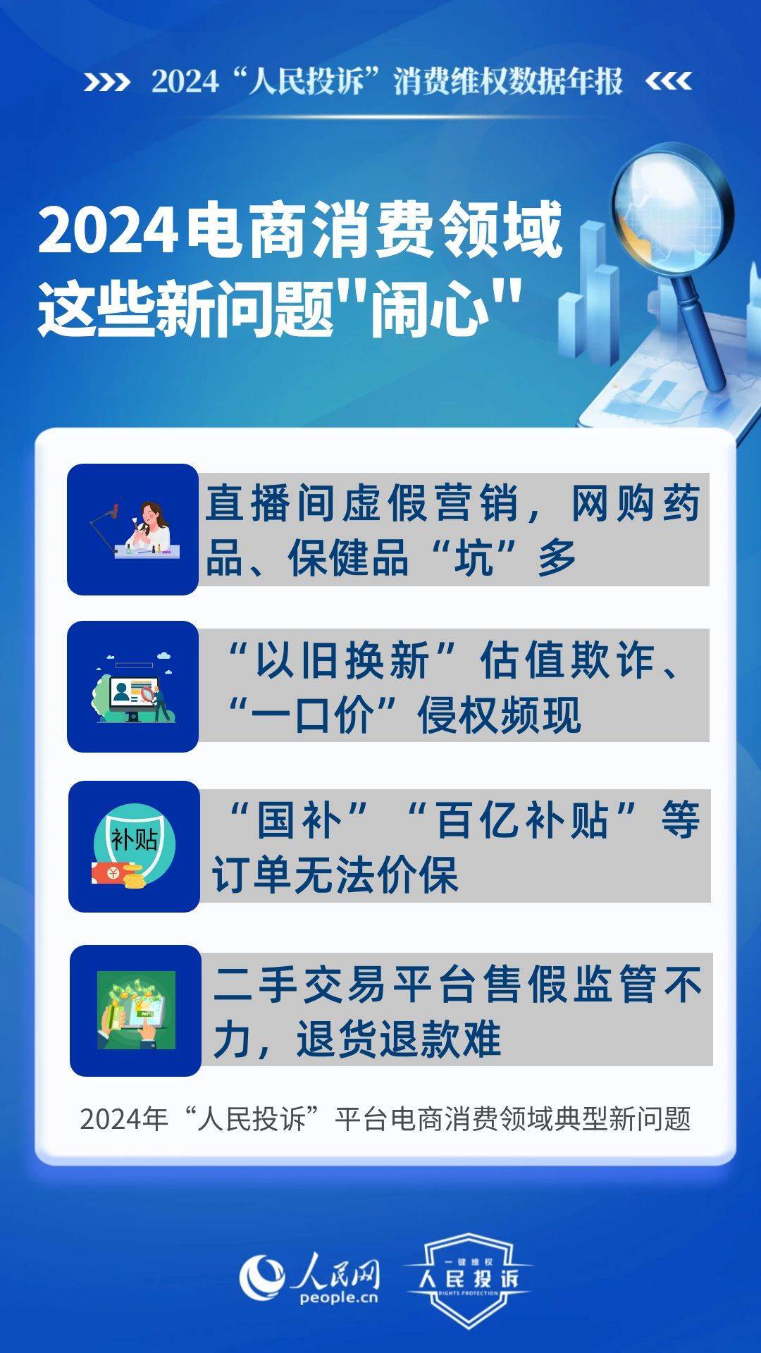 2024年,旅游消費(fèi)持續(xù)火爆,以舊換新“換”出消費(fèi)新活力,直播電商“品質(zhì)化”轉(zhuǎn)型,新能源汽車購銷兩旺……在消費(fèi)市場熱力持續(xù)提升的背景下,旅游產(chǎn)品退訂難,電商促銷虛假價保,直播間營銷違規(guī),車險車貸服務(wù)欺詐,AI培訓(xùn)貨不對板等消費(fèi)侵權(quán)問題引發(fā)廣泛關(guān)注。“人民投訴”發(fā)布年報(bào)帶您回顧這一年來,平臺消費(fèi)維權(quán)熱點(diǎn)和入駐企業(yè)積極處理糾紛的舉措。