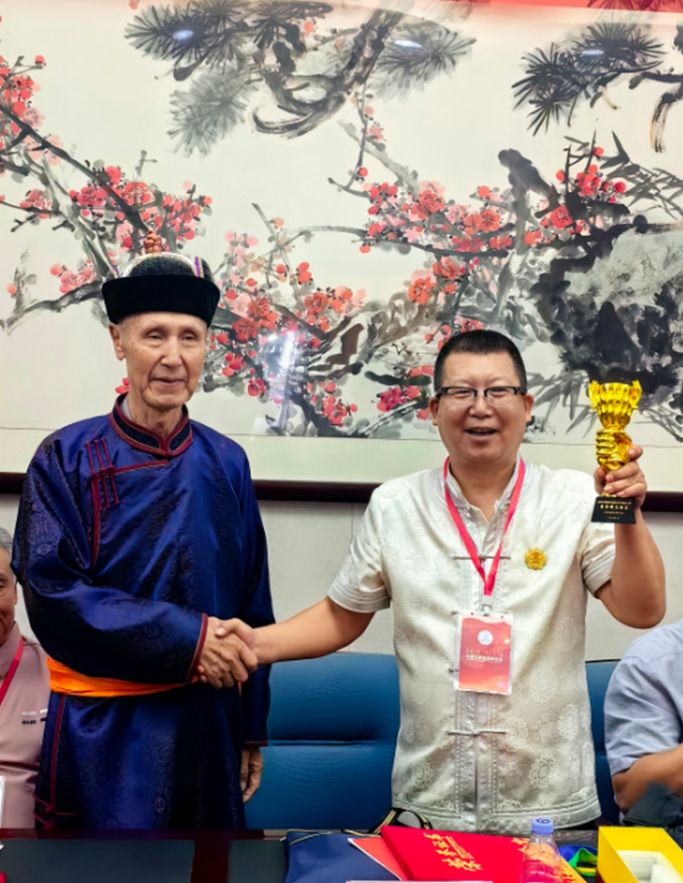 全國(guó)名中醫(yī)(名蒙醫(yī))阿古拉教授為董薩那巴特爾頒獎(jiǎng)