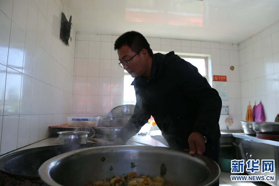 張慧聰?shù)囊惶鞆牧璩?點開始,喂豬、燒鍋爐、摘菜、盯食材、上課、查宿舍,豬一天要喂三次、鍋爐也要頻繁關注、三餐食材一頓也不能落、四個年級每班每天都要上課、每隔一段時間還得清理旱廁……這里沒有一間屬于他的辦公室,但這里卻處處是他的“辦公室”。新華網(wǎng) 李倩攝