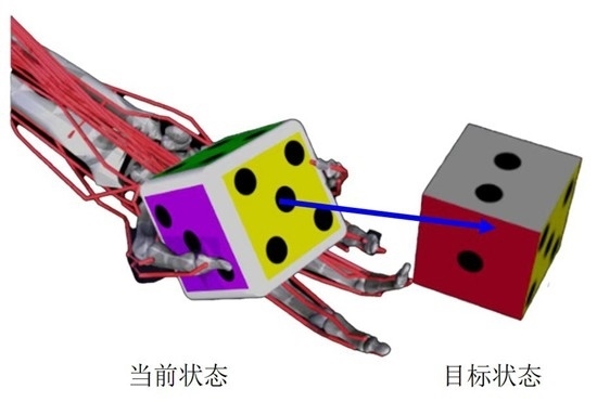 花了大約一周時間熟悉仿生靈巧手的關節(jié)與肌肉之間的關系后,他們開始制訂培訓這位人工智能“學生”的方案。抓取、轉動骰子,對仿生手來說相當復雜,他們就將動作拆解,如同體操教練教學員完成一套復雜的轉體、曲體組合動作時,先教各個分解動作,再進一步完成動作組合。如同水族館表演的海豚,通過獎勵塑造,人工智能在完成目標動作時,一個相當于小魚的獎勵函數會對它進行“激勵”,以促進其更好地“學習”。