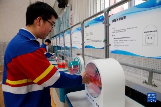 當(dāng)日,北京第五中學(xué)舉辦校園科技嘉年華“數(shù)學(xué)科普主題日”活動,將北京科學(xué)中心的流動科普展品搬進(jìn)校園,學(xué)生們通過體驗趣味裝置、自編自演小話劇等形式,在輕松快樂中感受科學(xué)的魅力。