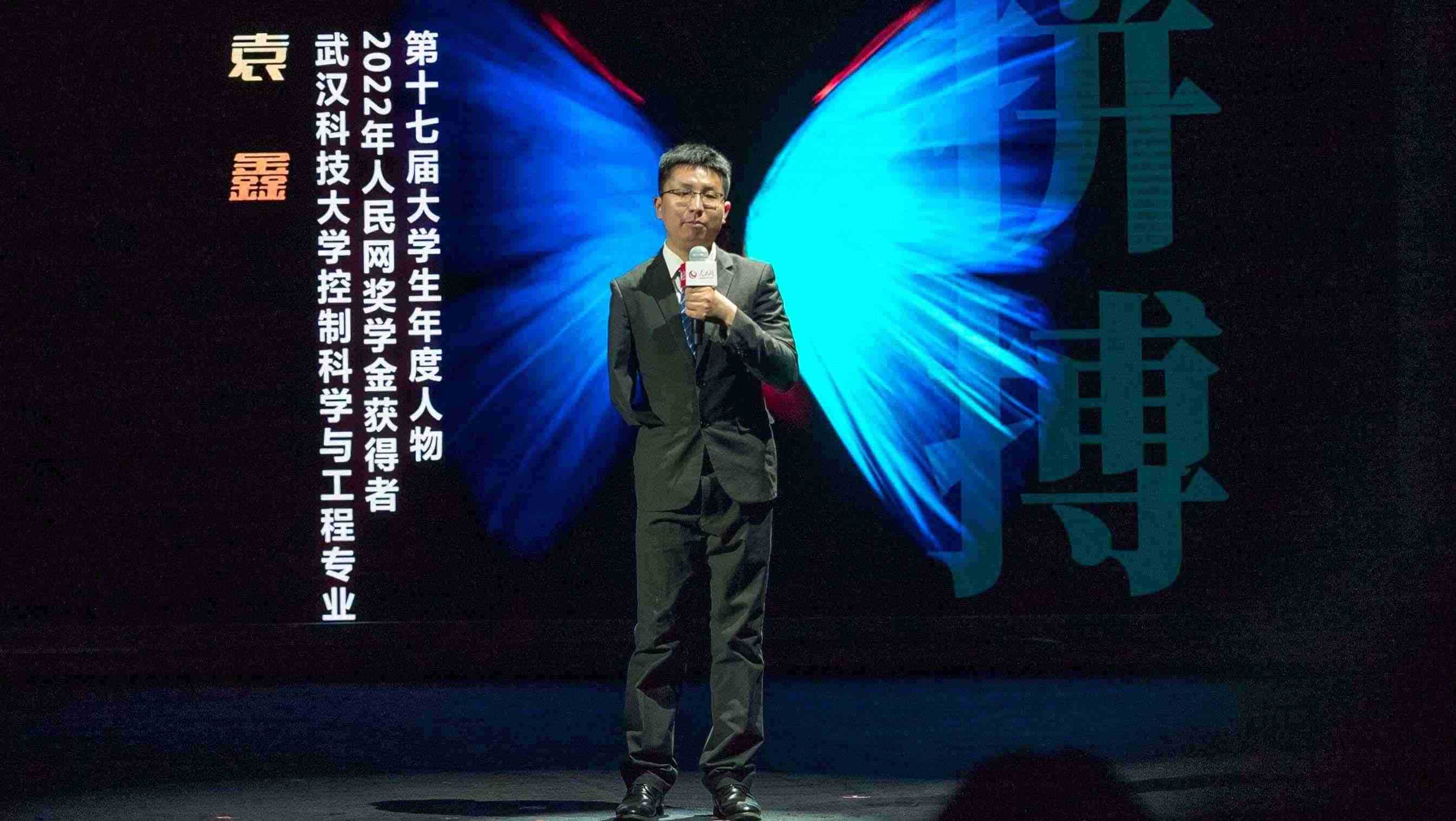 第十七屆大學生年度人物、2022年度人民網獎學金一等獎獲得者武漢科技大學控制科學與工程專業(yè)博士生袁鑫分享自己的故事。實習生韓華良 攝