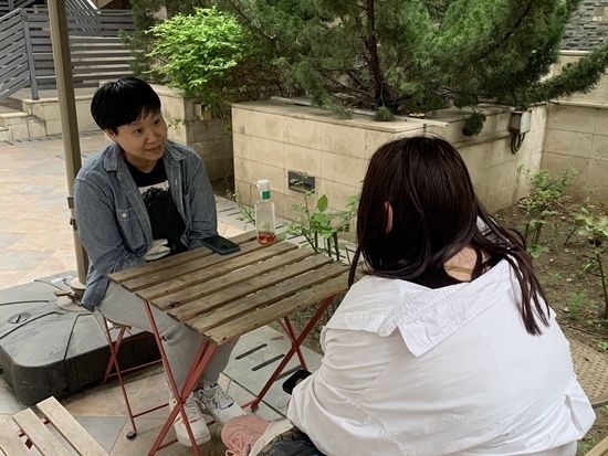 李涵與一位未成年被害人談心,為其做心理疏導(dǎo)。受訪者供圖