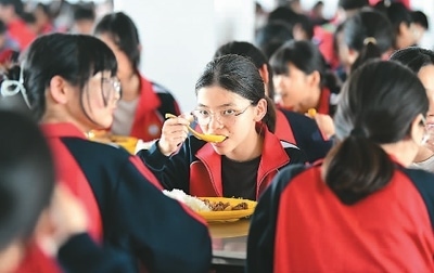 近年來,安徽省阜陽市阜南縣各配備有營(yíng)養(yǎng)餐的學(xué)校嚴(yán)把食品衛(wèi)生關(guān),讓學(xué)生的營(yíng)養(yǎng)餐真正成為陽光餐、幸福餐。圖為5月17日,阜南縣黃崗鎮(zhèn)靳成學(xué)校的學(xué)生們?cè)谑程贸晕顼垺?呂乃明攝(人民視覺)