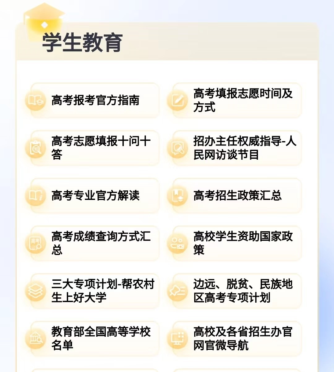 聚焦于高考生群體,“人民網(wǎng)+”客戶端便民服務(wù)匯總小程序聚合多項(xiàng)實(shí)用資訊,為考生及家長(zhǎng)提供權(quán)威、便捷的服務(wù):