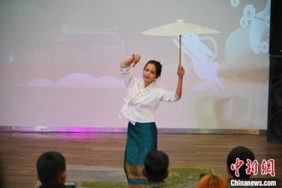 圖為泰國(guó)留學(xué)生表演蓬朗舞。劉冉陽 攝