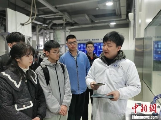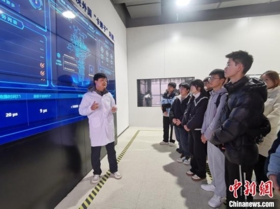 量子計(jì)算專(zhuān)家向高校學(xué)生介紹量子計(jì)算芯片。張俊 攝