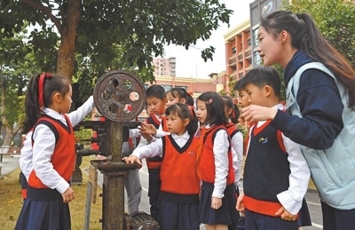 2022年3月,九龍坡區(qū)教委印發(fā)《關(guān)于推進(jìn)中小學(xué)集團(tuán)化辦學(xué)的意見》,謝家灣金茂小學(xué)成為謝家灣教育集團(tuán)一體化辦學(xué)成員校。謝家灣金茂小學(xué)的前身是重慶建設(shè)工業(yè)(集團(tuán))有限公司子弟學(xué)校,約1/3的教師曾是工廠職工?!盎趯W(xué)校情況,我們強(qiáng)調(diào)培養(yǎng)學(xué)生養(yǎng)成熱愛勞動(dòng)的習(xí)慣,形成陽光心態(tài)?!敝x家灣金茂小學(xué)黨總支書記楊永財(cái)指著校園內(nèi)擺放的老舊機(jī)床說,“重慶建設(shè)工業(yè)(集團(tuán))有限公司發(fā)展歷史厚重,學(xué)校積極挖掘紅色資源,給孩子們講好革命歷史,上好思政課?!?/p>