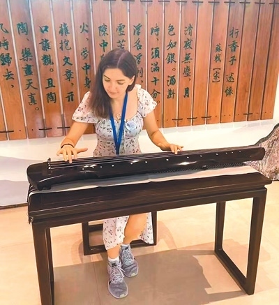 來自俄羅斯的伊麗莎白在彈古琴。(本文配圖由中外語言交流合作中心提供)