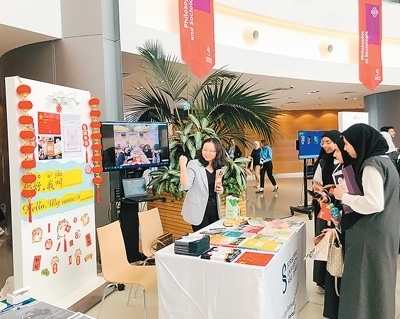 | 今年2月,張翠翠(左)參加索邦大學(xué)阿布扎比校區(qū)的開放日活動(dòng)。(本文配圖由中國國際中文教育基金會(huì)提供) |