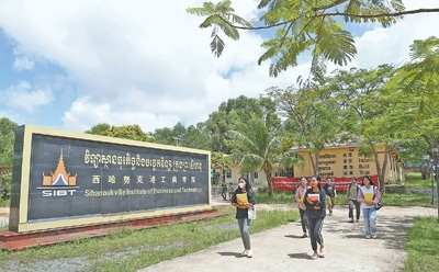 西哈努克港工商學(xué)院由柬埔寨西港特區(qū)公司聯(lián)合中國無錫商業(yè)職業(yè)技術(shù)學(xué)院共同創(chuàng)辦,是柬埔寨首個中文大學(xué)。圖為學(xué)生們行走在校園。