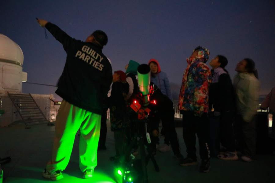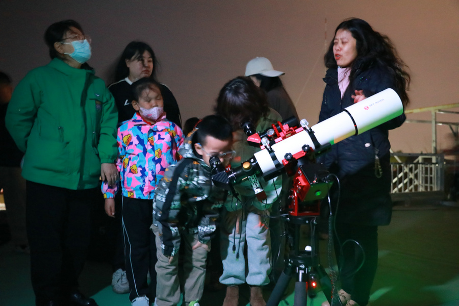 夜幕降臨,參加活動的學(xué)員家庭走進(jìn)悟空天文臺,近距離接觸“內(nèi)蒙古天眼”——自治區(qū)最大的單口徑光學(xué)望遠(yuǎn)鏡,學(xué)習(xí)望遠(yuǎn)鏡構(gòu)造與應(yīng)用原理。在老師的指導(dǎo)下,通過望遠(yuǎn)鏡觀測春季星空,辨識星座,領(lǐng)略土星光環(huán)、月球隕石坑等天象奇觀?;顒舆€特別設(shè)置了“天文趣味知識大挑戰(zhàn)”,以互動問答鞏固學(xué)習(xí)成果,孩子們爭相搶答,展現(xiàn)出對宇宙的無限好奇。