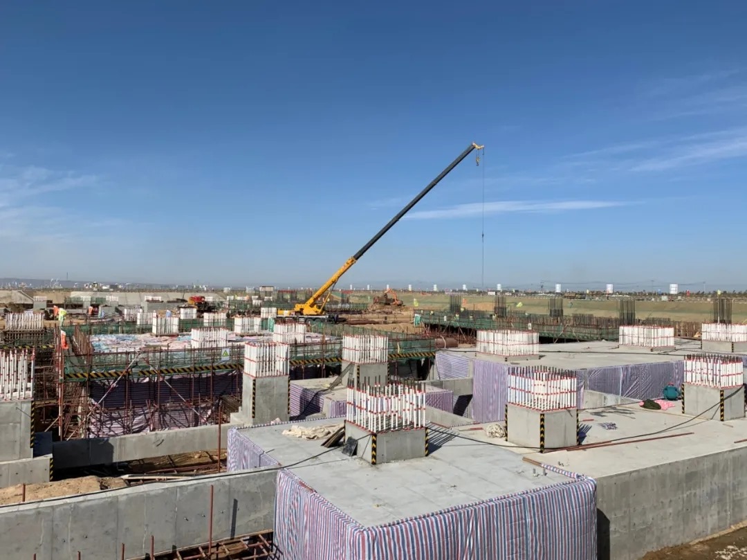 主廠房4號(hào)鍋爐承臺(tái)澆筑緊張進(jìn)行中