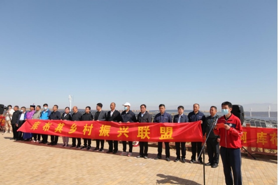 第18屆庫(kù)布其植樹節(jié)同步翻開了“鞏固脫貧攻堅(jiān)成果、推動(dòng)鄉(xiāng)村振興發(fā)展”的新篇章。在鄂爾多斯、杭錦旗各級(jí)黨委政府的領(lǐng)導(dǎo)下,億利集團(tuán)攜手鄂爾多斯市50多家中小企業(yè)、杭錦旗工商聯(lián)、國(guó)家稅務(wù)總局杭錦旗稅務(wù)局和相關(guān)的企業(yè)、公益機(jī)構(gòu)和社會(huì)愛心人士,聯(lián)合庫(kù)布其沙區(qū)的杭錦淖爾村、刀圖嘎查、沙日召嘎查、圖古日格嘎查、白音補(bǔ)拉嘎查、查干布拉嘎查、格更召嘎查,成立庫(kù)布其鄉(xiāng)村振興聯(lián)盟(以下簡(jiǎn)稱“聯(lián)盟”),活動(dòng)現(xiàn)場(chǎng)宣讀了《庫(kù)布其鄉(xiāng)村振興聯(lián)盟宣言》。聯(lián)盟將致力于重點(diǎn)推進(jìn)分布式光伏發(fā)電項(xiàng)目建設(shè),打造黃河文化、沙漠文化、民俗文化相結(jié)合的文化旅游村,進(jìn)一步發(fā)掘古如歌文化,建設(shè)好沙漠綠色生態(tài)公園,高質(zhì)量推動(dòng)板下現(xiàn)代農(nóng)牧產(chǎn)業(yè)發(fā)展,同時(shí)依托億利在庫(kù)布其打造起來(lái)的一二三產(chǎn)業(yè)融合發(fā)展的產(chǎn)業(yè)平臺(tái),切實(shí)推動(dòng)庫(kù)布其周邊村嘎查鄉(xiāng)村振興。國(guó)家稅務(wù)總局杭錦旗稅務(wù)局在活動(dòng)現(xiàn)場(chǎng)宣傳了稅務(wù)支持服務(wù)營(yíng)商環(huán)境改善、減稅降費(fèi)、降碳擴(kuò)綠等惠民惠企政策,營(yíng)造“稅企村”共同助力黃河流域生態(tài)保護(hù)與高質(zhì)量發(fā)展、推動(dòng)鄉(xiāng)村振興的新格局。