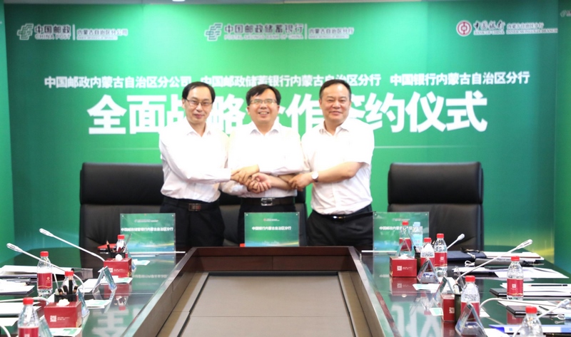 胡文勇行長表示,中國銀行內(nèi)蒙古分行植根草原沃土四十二載,始終把服務國家、自治區(qū)發(fā)展大局和賦能人民美好生活作為堅定使命,堅守金融本源,積極踐行國有大行責任擔當,以“八大金融”為著力點,為自治區(qū)經(jīng)濟社會高質(zhì)量發(fā)展提供了強有力的金融支持。中國郵政始終秉持“人民郵政為人民”的初心,以普遍服務為根基,在保證國家政令暢通、傳播黨的方針政策以及保障公民通信權(quán)、促進經(jīng)濟社會發(fā)展等方面發(fā)揮著重要作用。中國郵政儲蓄銀行承擔著“普之城鄉(xiāng),惠之于民”的社會責任,在提供普惠金融服務、發(fā)展綠色金融、助力鄉(xiāng)村振興等方面持續(xù)發(fā)力,已成為地方金融改革創(chuàng)新和服務實體經(jīng)濟發(fā)展的重要力量。希望未來三方持續(xù)拓展在金融領(lǐng)域和非金融領(lǐng)域的合作空間,共同為自治區(qū)廣大企事業(yè)單位和人民群眾提供更優(yōu)質(zhì)、更便捷、更全面的金融服務和郵政服務。