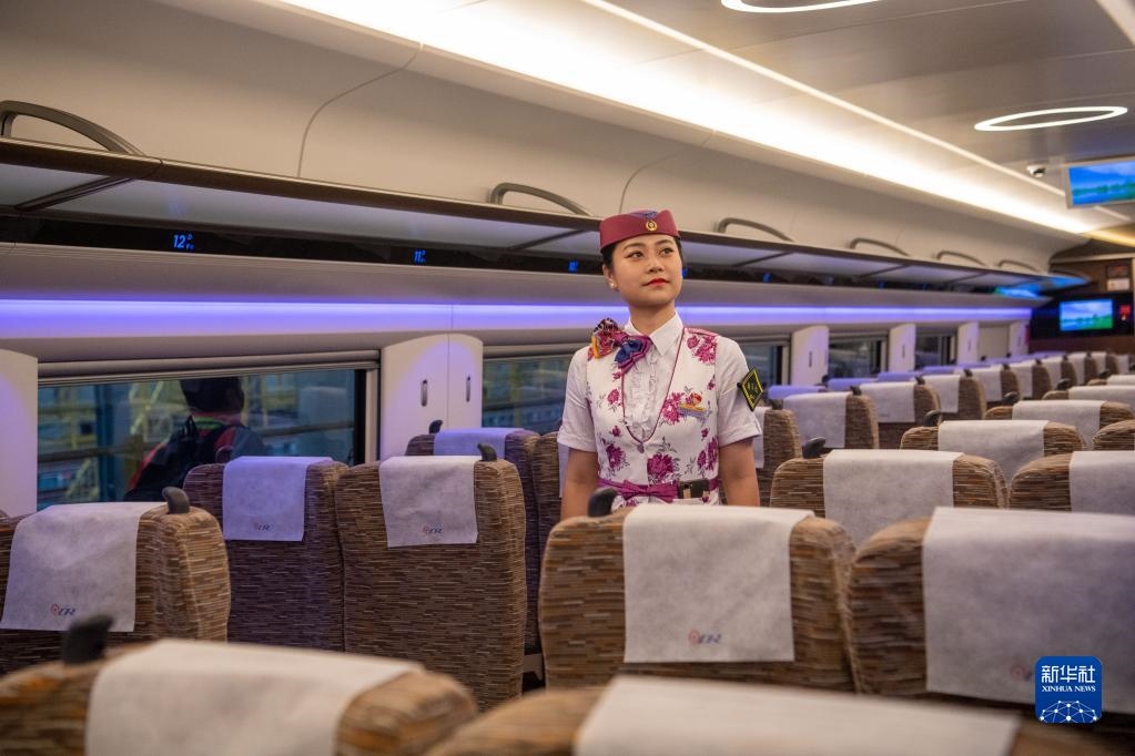 2022年6月20日,鄭渝高鐵首發(fā)列車G52次列車動車組人員正在等待乘客上車。新華社記者 陳青冰 攝