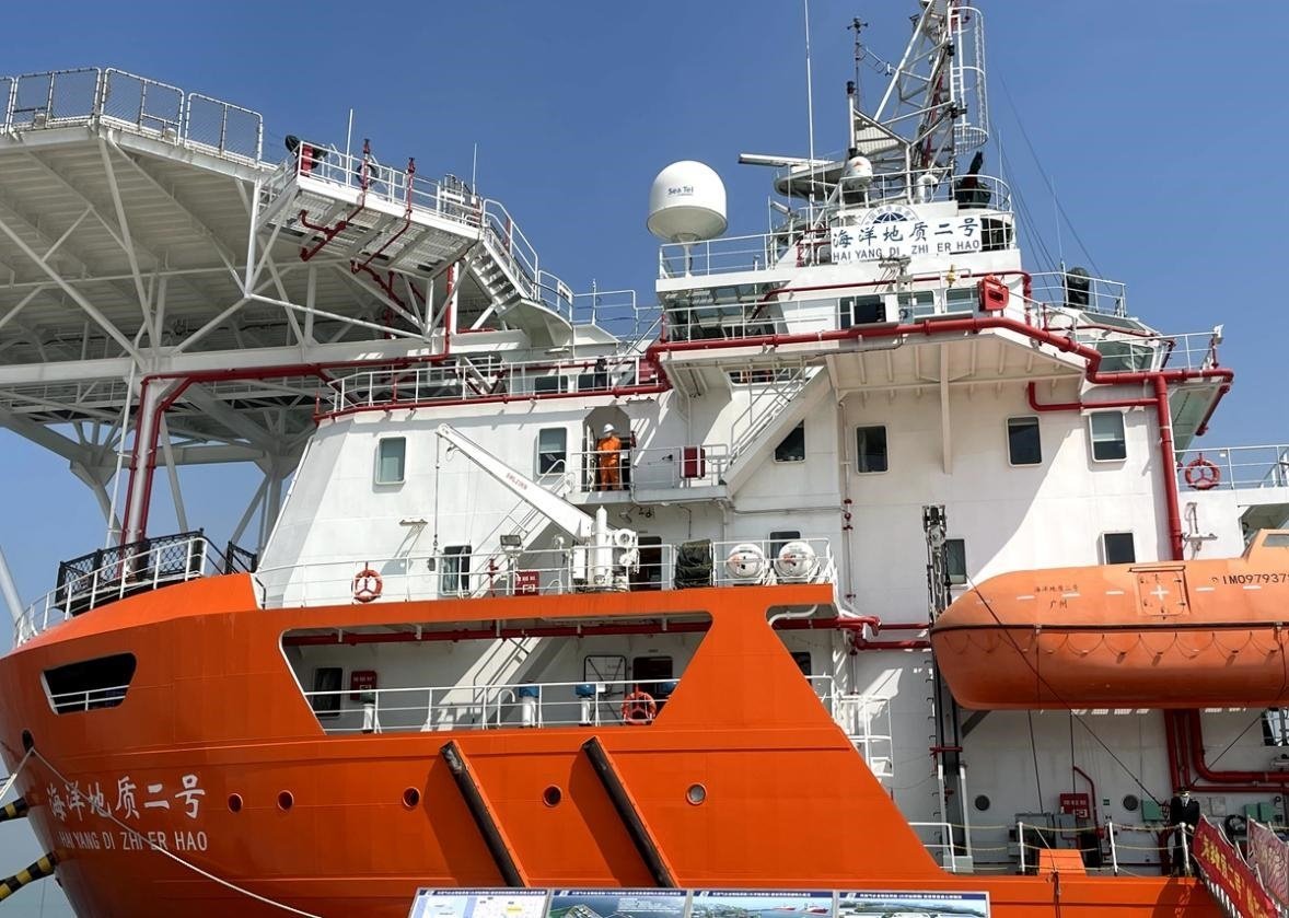 ??吭谥袊刭|(zhì)調(diào)查局廣州海洋地質(zhì)調(diào)查局科考碼頭的“海洋地質(zhì)二號(hào)”科考船。人民網(wǎng) 李佳穎攝