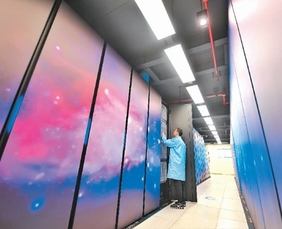 2023年2月14日,四川省成都市,國家超級計算成都中心的科研人員在巡檢機房設備。新華社記者 劉 坤攝