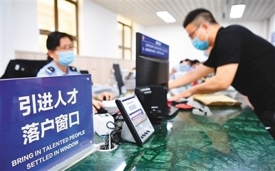 外省人員在海南省??谑泄簿置捞m分局人口和出入境管理服務中心辦理人才落戶業(yè)務。 新華社記者 郭 程攝