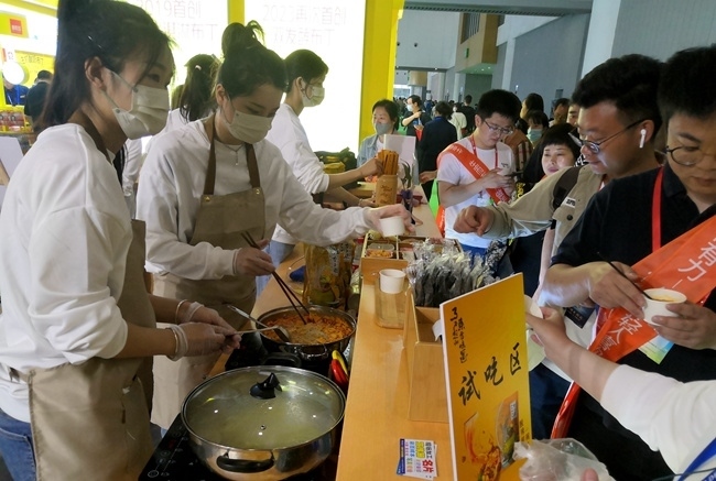 糖酒會上試吃區(qū)客商和觀眾排隊(duì)試吃產(chǎn)品。人民網(wǎng)記者 孫博洋攝