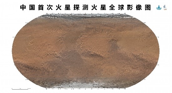 人民網(wǎng)北京4月24日電 (記者趙竹青、王震)記者從國家航天局獲悉,4月24日,在2023年“中國航天日”主場活動啟動儀式上,國家航天局和中國科學(xué)院聯(lián)合發(fā)布了中國首次火星探測火星全球影像圖。本次發(fā)布的影像圖為彩色,包括按照制圖標準分別制作的火星東西半球正射投影圖、魯賓遜投影圖和墨卡托投影加方位投影圖,空間分辨率為76米,將為開展火星探測工程和火星科學(xué)研究提供質(zhì)量更好的基礎(chǔ)底圖。天問一號任務(wù)獲取的包括影像圖在內(nèi)的一批科學(xué)探測數(shù)據(jù),將為人類深入認知火星作出中國貢獻。