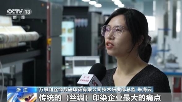 萬事利絲綢數(shù)碼印花有限公司技術(shù)研發(fā)部總監(jiān) 朱海云:傳統(tǒng)的絲綢印染企業(yè)最大的痛點(diǎn)就是庫存壓力,現(xiàn)在我們通過人工智能AI的設(shè)計(jì),再加上我們的一體機(jī)快返的工藝特點(diǎn),它能夠達(dá)到一個(gè)先銷后產(chǎn)的經(jīng)營模式,能夠解決我們庫存壓力的痛點(diǎn)。