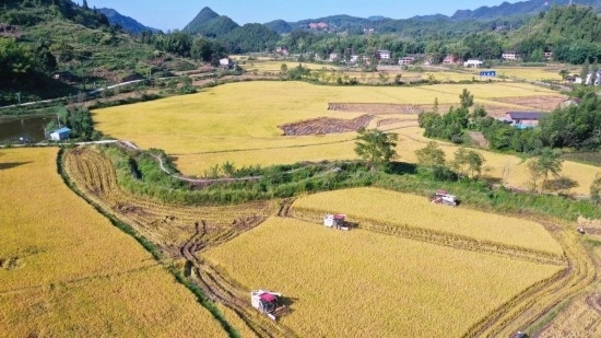 秋收時(shí)節(jié),稻田稻浪翻滾,作為“巴渝糧倉(cāng)”的重慶梁平區(qū)又迎來了豐收景象。