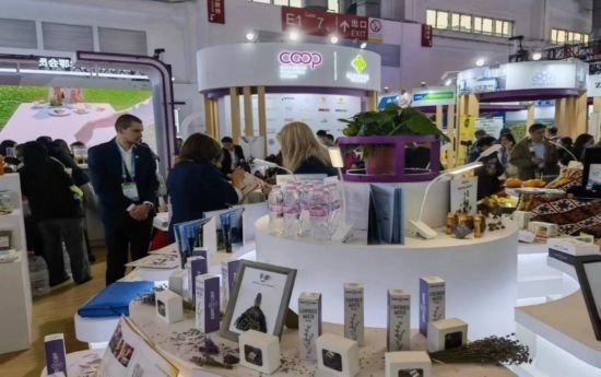 圖為綠色農(nóng)業(yè)鏈展區(qū),多國特色產(chǎn)品進(jìn)行展示。新華社記者 成欣 攝
