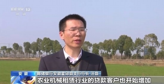 郵儲銀行安徽霍邱縣支行行長 汪磊:隨著機械強農(nóng)的推進,農(nóng)業(yè)服務(wù)公司、農(nóng)業(yè)機械租賃行業(yè)的貸款客戶也開始增加,今年這類新型客戶貸款金額同比增幅超300%。