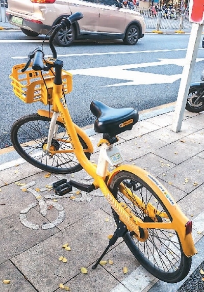 廣東深圳福田區(qū)福中路上,一輛共享單車停放于專門劃定的還車點(diǎn)內(nèi)。本報記者 盧澤華攝