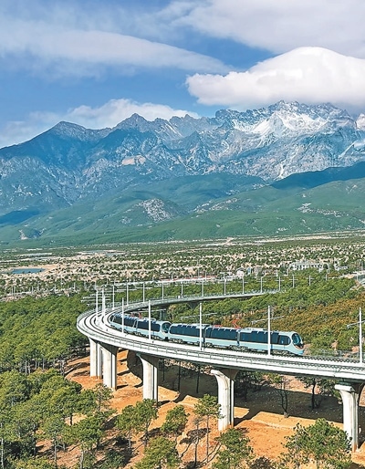 雪山、繁花與牧場,構(gòu)成了一幅美麗畫卷,令人陶醉其中?!帮L景太美了!”游客賴先生是第二次來云南麗江,這次旅行他體驗了麗江雪山觀光火車。自2月12日開通以來,麗江雪山觀光火車迅速成為旅游界的新“爆款”。這列由我國自主研發(fā)的全球首列全景觀光山地旅游列車,以其獨特的設計和舒適的體驗,為游客帶來一場別具一格的雪山之旅,更成為連接麗江古城與玉龍雪山的“黃金紐帶”。