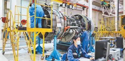 福建自貿(mào)試驗(yàn)區(qū)廈門(mén)片區(qū),航空維修基地的工程師在進(jìn)行發(fā)動(dòng)機(jī)維修作業(yè)。