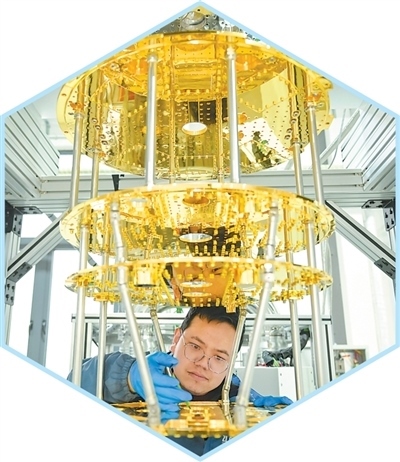 安徽合肥一家科技公司的技術(shù)人員在安裝稀釋制冷機(jī)的換熱組件。