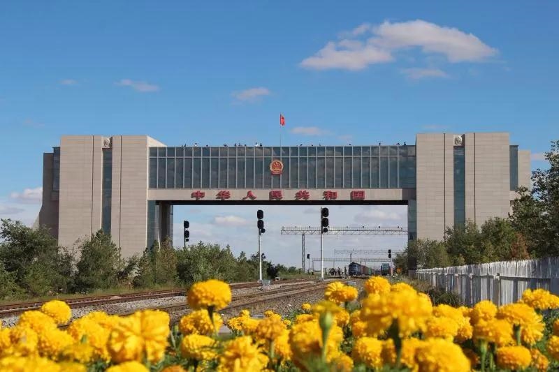 國門莊嚴肅穆,在國門乳白色的門體上方嵌著"中華人民共和國"7個鮮紅大字,上面懸掛的國徽閃著的金光,國際鐵路在下面通過。國門下方的中蒙鐵路,是連接首都北京和烏蘭巴托、莫斯科的鐵路交通大動脈,被譽為“歐亞大陸橋”。
