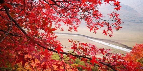 金秋的楓林遍地火紅。