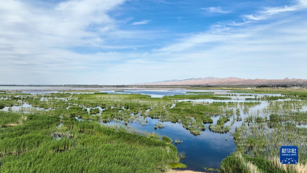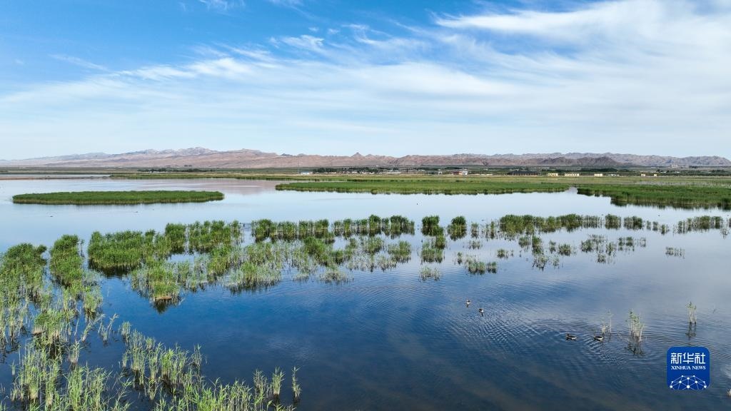 夏日里,位于內(nèi)蒙古巴彥淖爾市烏拉特前旗的烏梁素海波光粼粼,風景如畫。