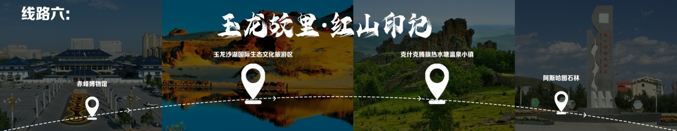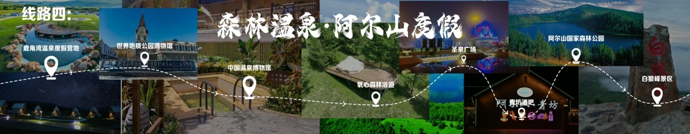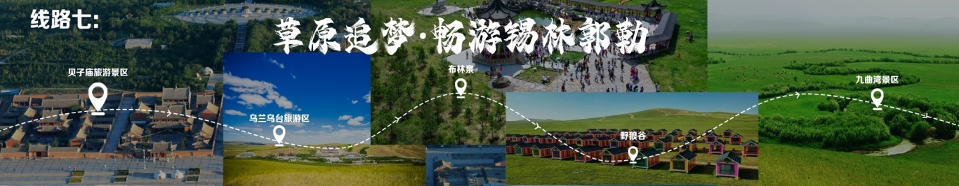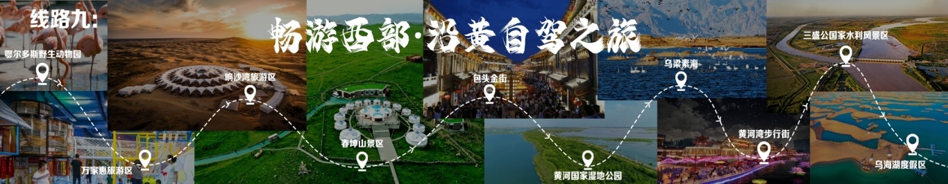 “一城看北疆?大美青城”四日游 行程由呼和浩特出發(fā),至哈達(dá)門高山草原旅游區(qū),至莫尼山非遺小鎮(zhèn),至大召歷史文化旅游區(qū),再至昭君博物院,再至奧威馬文化生態(tài)旅游區(qū),再至蒙草草博園,再至老牛坡紅色文化旅游區(qū),終點為老牛灣黃河大峽谷旅游區(qū)。 線路二 “醉美草原·呼倫貝爾”五日游 線路行程由海拉爾出發(fā),至呼倫貝爾大草原·莫爾格勒河景區(qū),至烏蘭山,至額爾古納濕地,再至白樺林,再至呼和諾爾旅游區(qū),終點為呼倫貝爾古城旅游休閑街區(qū)。 線路三 “邊境風(fēng)情·環(huán)興安嶺自駕之旅”四日游 線路行程由烏蘭浩特出發(fā),至翰嘎利湖休閑旅游度假區(qū)出發(fā),再至紅花爾基樟子松林國家森林旅游區(qū),再至諾干湖旅游度假區(qū),再至扎賚諾爾猛犸旅游區(qū),終點為滿洲里市中俄邊境旅游區(qū)。 線路四 “森林溫泉·阿爾山度假”三日游 線路行程由阿爾山出發(fā),至鹿角灣溫泉度假營地,至世界地質(zhì)公園博物館,至中國溫泉博物館,再至氧心森林浴道,再至圣泉廣場,再至青坊酒吧,再至阿爾山國家森林公園,終點為白狼峰景區(qū)。 線路五 “勝境探秘·科爾沁草原”三日游 線路行程由通遼出發(fā),至科爾沁左翼中旗探訪哈民考古遺址公園,至珠日河草原旅游區(qū),再至科左后旗大青溝旅游區(qū),終點為庫倫旗銀沙灣旅游區(qū)。 線路六 “玉龍故里·紅山印記”三日游 線路行程由赤峰出發(fā),至赤峰博物館,至玉龍沙湖國際生態(tài)文化旅游區(qū),再至克什克騰旗熱水塘溫泉小鎮(zhèn),終點為阿斯哈圖石林。 線路七 “草原追夢·暢游錫林郭勒”三日游 線路行程由錫林浩特出發(fā),至貝子廟旅游景區(qū),至烏蘭烏臺旅游區(qū),至布林泉,再至野狼谷,終點為九曲灣景區(qū)。 線路八 “北京向西一步·草原避暑之旅”四日游 線路行程由北京出發(fā),至烏蘭哈達(dá)火山,至二連浩特國家地質(zhì)公園,至輝騰錫勒草原,至林胡古塞,再至集寧戰(zhàn)役紀(jì)念館,再至烏蘭察布之夜,終點為蘇木山旅游區(qū)。 線路九 “暢游西部·沿黃自駕之旅”五日游 線路行程由鄂爾多斯出發(fā),至鄂爾多斯野生動物園,至萬家惠旅游區(qū),至響沙灣旅游區(qū)。到達(dá)包頭,至春坤山景區(qū),再至包頭金街,至黃河國家濕地公園。到達(dá)巴彥淖爾,至烏梁素海,再至黃河灣步行街,再至三盛公國家水利風(fēng)景區(qū),終點為烏海湖度假區(qū)。 線路十 “沙漠傳奇·巴丹吉林沙漠探險之旅”四日游 線路行程由阿拉善出發(fā),至參觀越野e族阿拉善夢想沙漠汽車航空樂園景區(qū),至定遠(yuǎn)營古城旅游區(qū),至巴丹吉林沙漠景區(qū),再至額濟納旗東風(fēng)航天城旅游區(qū),再至居延海景區(qū),終點為胡楊林旅游區(qū)。