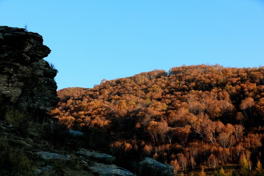 10月7日,呼和浩特大青山小井溝內(nèi),秋色五彩斑斕層林盡染。 北疆新聞?dòng)浾?nbsp; 張楊攝影