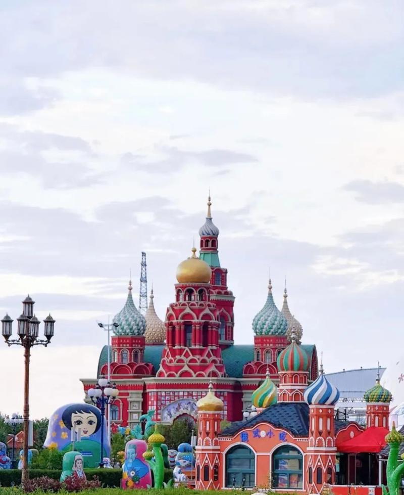 套娃廣場(chǎng):彩色套娃雕塑與俄式洋蔥頂建筑相映,推薦用廣角鏡頭低角度拍攝,將藍(lán)天、雕塑與人物剪影納入畫(huà)面,突出異域感。
