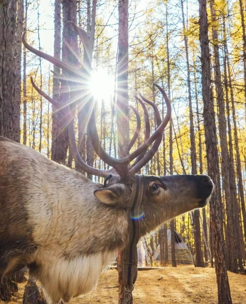 馴鹿互動(dòng):16:00至17:00林區(qū)光線柔和,讓模特手持苔蘚投喂馴鹿,用連拍模式抓拍馴鹿抬頭、人物微笑的瞬間;馴鹿低頭時(shí),可拍攝人物輕撫鹿角的特寫(xiě),體現(xiàn)人與動(dòng)物的溫情。