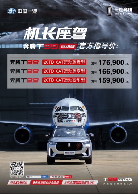6月3日,奔騰T99 運動版空中發(fā)布會,于海口前往合肥的JD99航班上舉行。