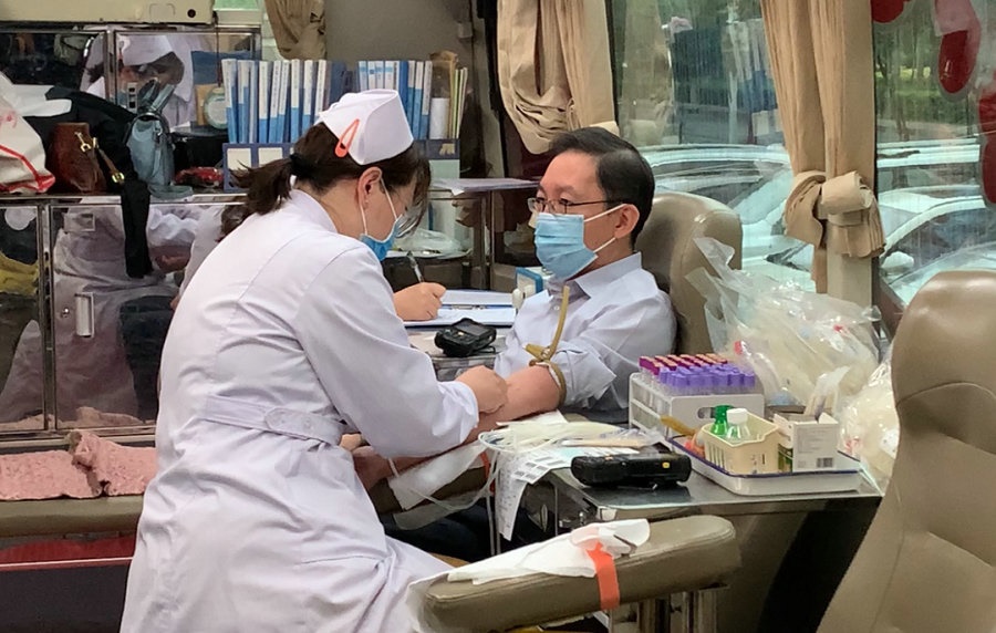 獻(xiàn)血當(dāng)天,華夏銀行呼和浩特分行樓前洋溢著溫暖熱烈的氣氛。行領(lǐng)導(dǎo)率先垂范,員工踴躍參與,大家精神飽滿、熱情高漲。在銀行黨委書記、行長邱險峰的帶領(lǐng)下早早來到獻(xiàn)血車前排起長隊,依次進(jìn)行登記、填表、審核、血液初篩等檢查環(huán)節(jié)。共81人通過審核,每人獻(xiàn)血300-400毫升,累計獻(xiàn)血25800毫升,并光榮領(lǐng)取了無償獻(xiàn)血證。