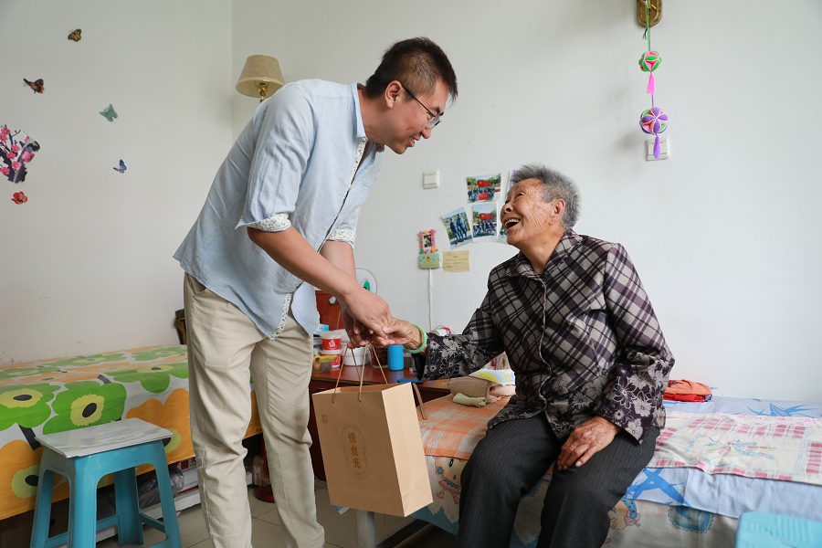 ??道夏旯⑹且凰t(yī)、養(yǎng)、教三位一體的“AAAAA”級養(yǎng)老機構(gòu),現(xiàn)有工作人員75名。崔玉蘭老人今年86歲,是一位小學(xué)退休老師,2016年來到??道夏旯ⅰ!?年了,這里的工作人員照顧得特別好。我平時愛畫畫、彈琴,還跟其他老人聊天,心情也舒暢了?!贝抻裉m老人笑著說?!案兄x企業(yè)為這些和藹可親的老人們獻愛心。”李永亮表達謝意。
