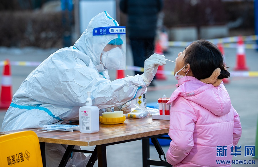 2月21日,在呼和浩特市玉泉區(qū)小召街道五塔寺廣場臨時核酸采樣點(diǎn),醫(yī)護(hù)人員為市民進(jìn)行核酸采樣。新華網(wǎng)發(fā) (丁根厚 攝)